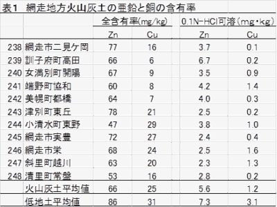 さきに土壌中の銅欠乏でムギ類が不稔になる事を述べた.北海道でムギ類に銅欠乏障害のあることを最初に発表したのは昭和44年である.当時とその後の可溶性の銅含有率の測定法に若干の違いがあるので,その後の統一された方法で分析した結果で見るとどのような値になるか見てみよう.
